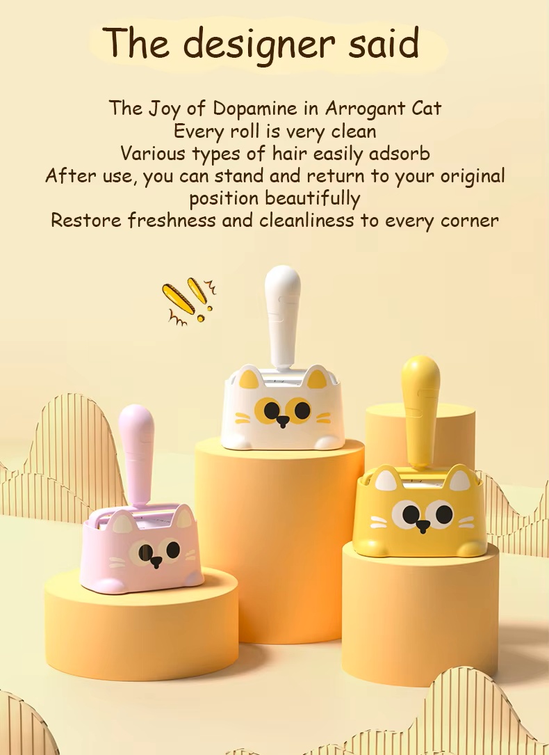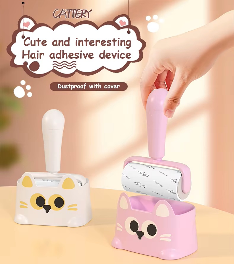 “Cute cat-shaped portable” small sticky hair roller with base