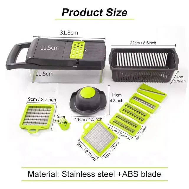 +Shipping costs differ based on destination country and shipping option.A multi-functional vegetable cutter, with multiple blades for dicing, shredding and slicing. It comes with a vegetable receiving container and a hand guard, making it easy to handle various vegetables. It’s a great helper for preparing vegetables in the kitchen.