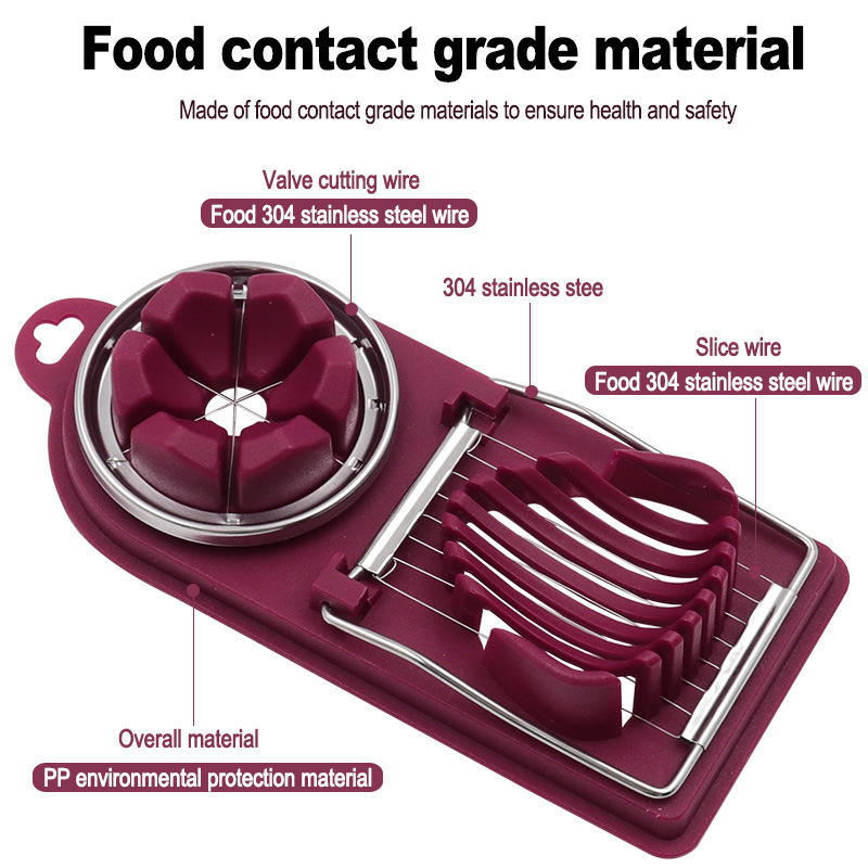 +Shipping costs differ based on destination country and shipping option.This multi-functional double-compartment egg slicer comes in white and red colors. It can slice or divide eggs into sections. Made of high-quality materials and with sharp blades, it is easy to cut eggs, making the processing of egg ingredients more convenient.