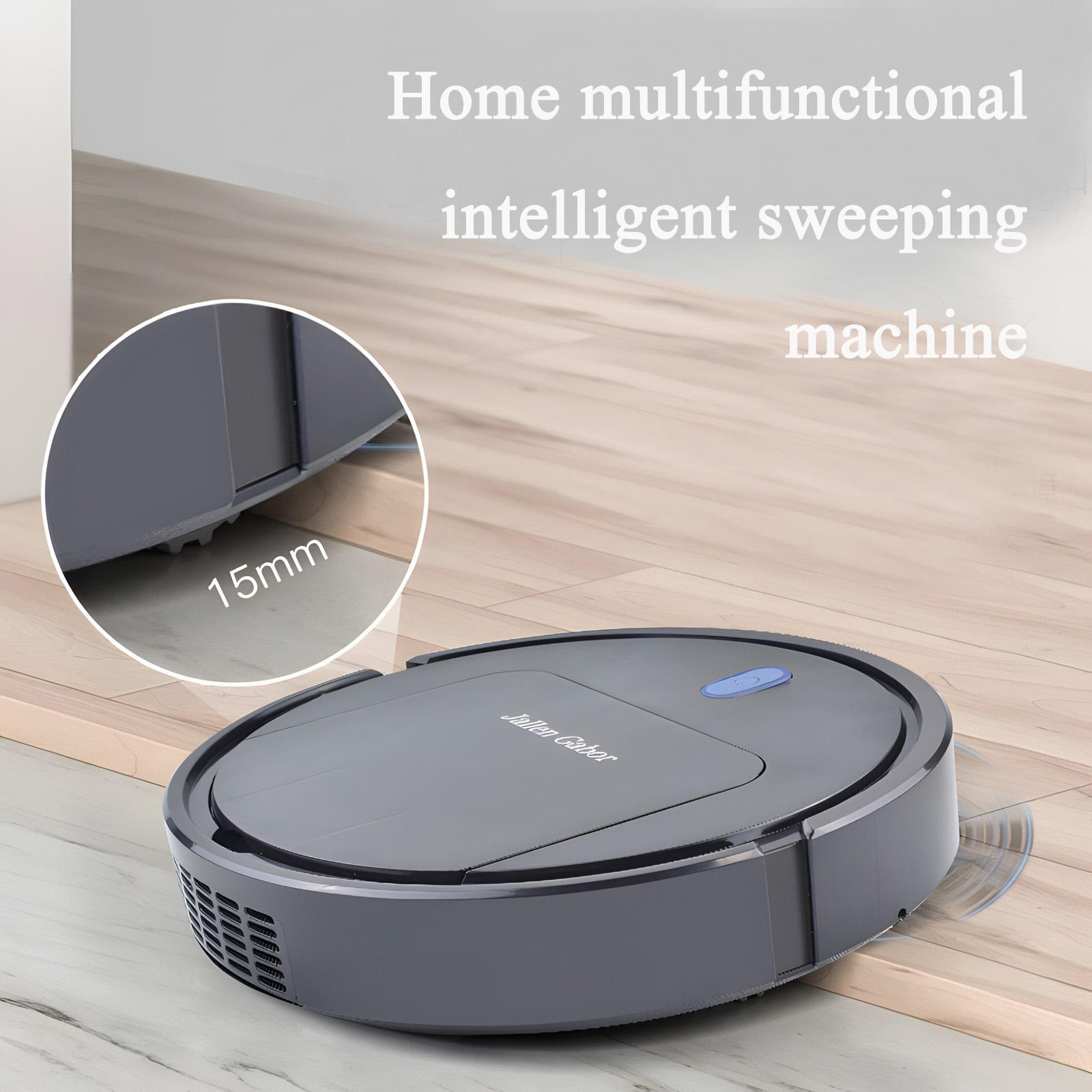 The new home smart fully automatic multi-functional vacuum cleaner features a simple dark grey appearance and a sleek and elegant design. It has the function of intelligently planning the cleaning path and can independently and efficiently cover all areas of the home. With an obstacle-crossing height of 15mm, it can easily handle small obstacles such as thresholds and carpet edges, and smoothly move across different ground surfaces. With its powerful suction, it can quickly remove dust, debris, hair and other debris from the ground, keeping it clean. The operation is simple. Whether it is daily cleaning or deep sweeping, it can save users time and effort